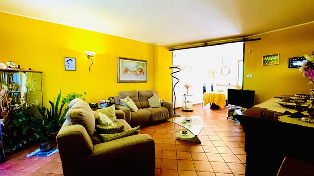 L’ingresso della villetta conduce a un’accogliente zona giorno composta da un soggiorno luminoso e da una cucina abitabile, separata ma funzionale, perfetta per i momenti conviviali in famiglia. Dal soggiorno si accede a un terrazzo dotato di tenda da sole, ideale per godersi momenti di relax all’aperto.