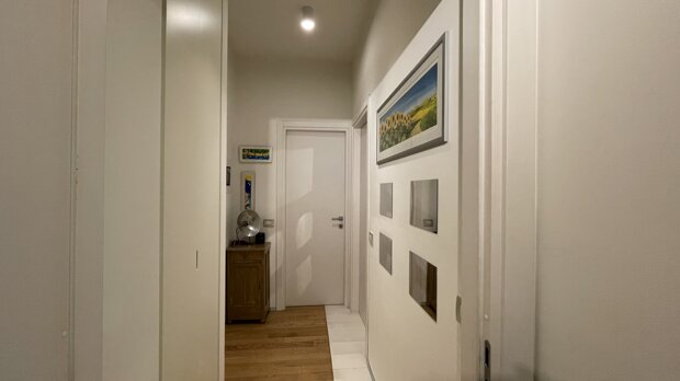 L’abitazione si distingue per la distribuzione armoniosa degli ambienti e per l’atmosfera accogliente che la contraddistingue. Il soggiorno, esposto a sud, si apre su un balcone loggiato abitabile con vista aperta; la cucina semiabitabile, moderna e funzionale, è dotata di isola centrale e di un comodo balcone di servizio. La zona notte comprende due camere da letto, uno studio perfetto anche come stanza ospiti o ambiente di lavoro, due bagni, una zona lavanderia e pratici spazi di servizio e ripostiglio.