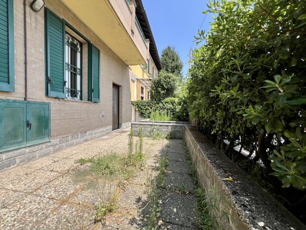 In posizione comoda e ben servita, proponiamo in vendita un bilocale di generosa metratura con accesso indipendente, situato al piano terra di una piccola palazzina rifinita esternamente in mattoncini a vista, priva di spese condominiali.
